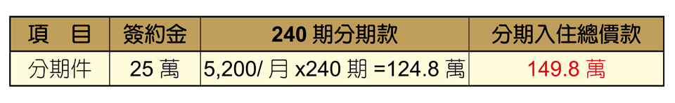 聖恩會員只要付149.8萬元,即可擁有一份完整的退休生活保障。使用「生活護照」所繳價金可以全額折抵「養生權契約」並享 20 年無息分期及提前入住金逐年遞減之優惠。