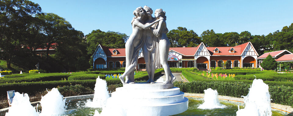 陣陣花香與大格局的造景,讓遊客彷如置身歐洲,數萬株的花草,以歐洲風味為設計的構想,定期更換四季花草,造型優雅的人體雕像、生動活躍的人工噴泉以及FUN電舒壓得樂活草園,讓遊客仿若置身歐洲愜意悠閒。