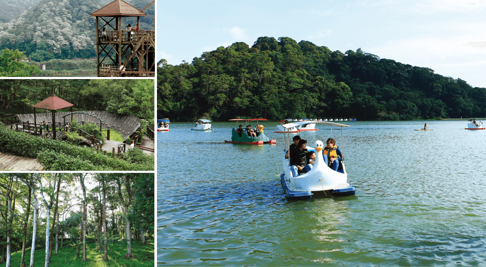 湖面波光粼粼,面積廣達十公頃,踩船遊湖,可看到綠頭鴨,或當季的候鳥。