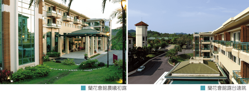 蘭花會館外觀十足的現代風,內部充滿了蘭花元素,大廳的吊燈為蘭花造型,並以蘭花盆景襯托空間氛圍,地毯則是蘭花圖案,客房也以蘭花圖來布置,餐廳更以「一葉廳」、「蝴蝶廳」為名,就是要讓入住遊客感受到濃濃的蘭花風情。