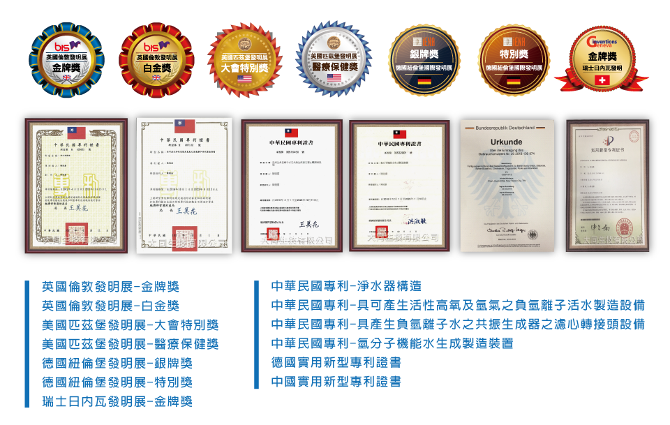 榮獲多項國際發明展大獎及專利