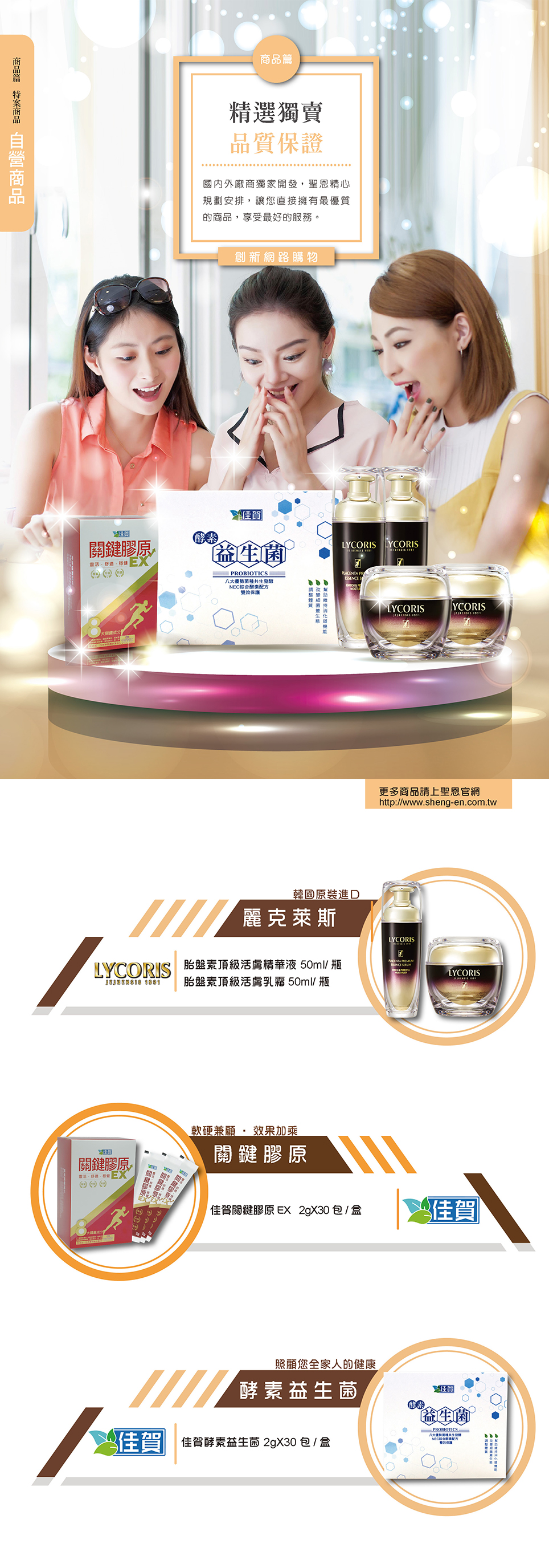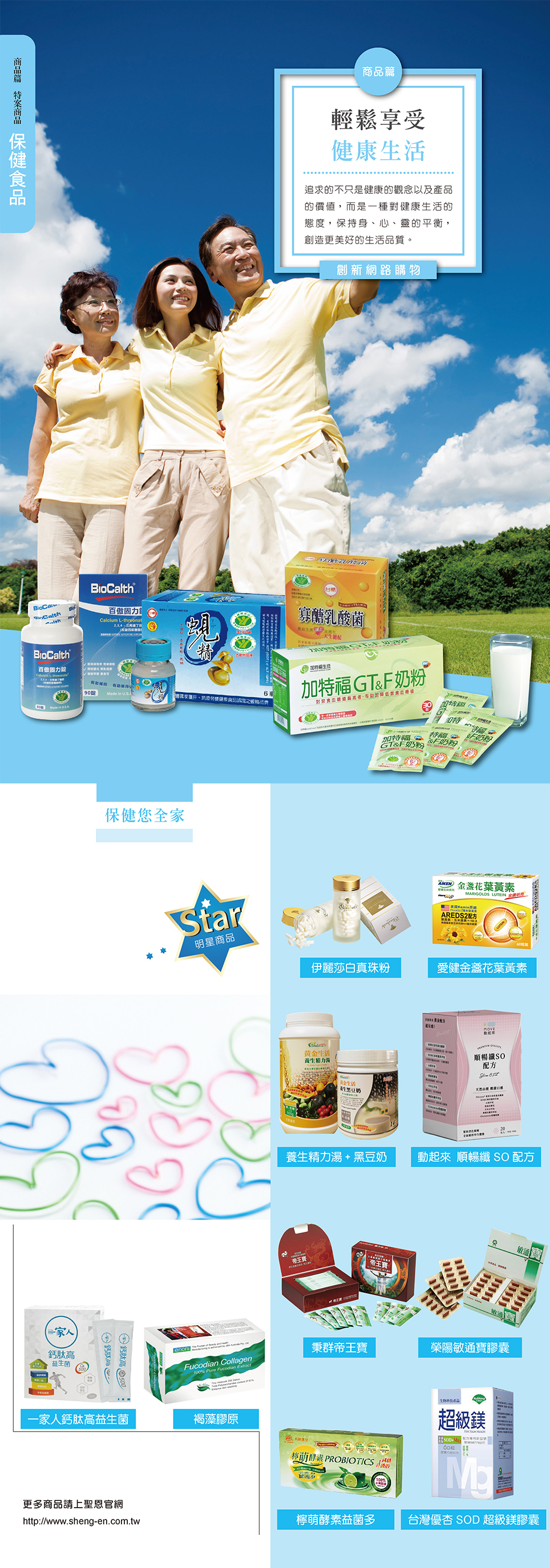 嚴選全國數百家生技大廠,品項超過數萬種以上的保健商品,包含保健食品、保健用品、美容用品、環保清潔用品…等,並指派生技專家於各分公司駐點服務、健康諮詢及解說檢測,完整售前、售後服務,照顧您全家的身體健康。