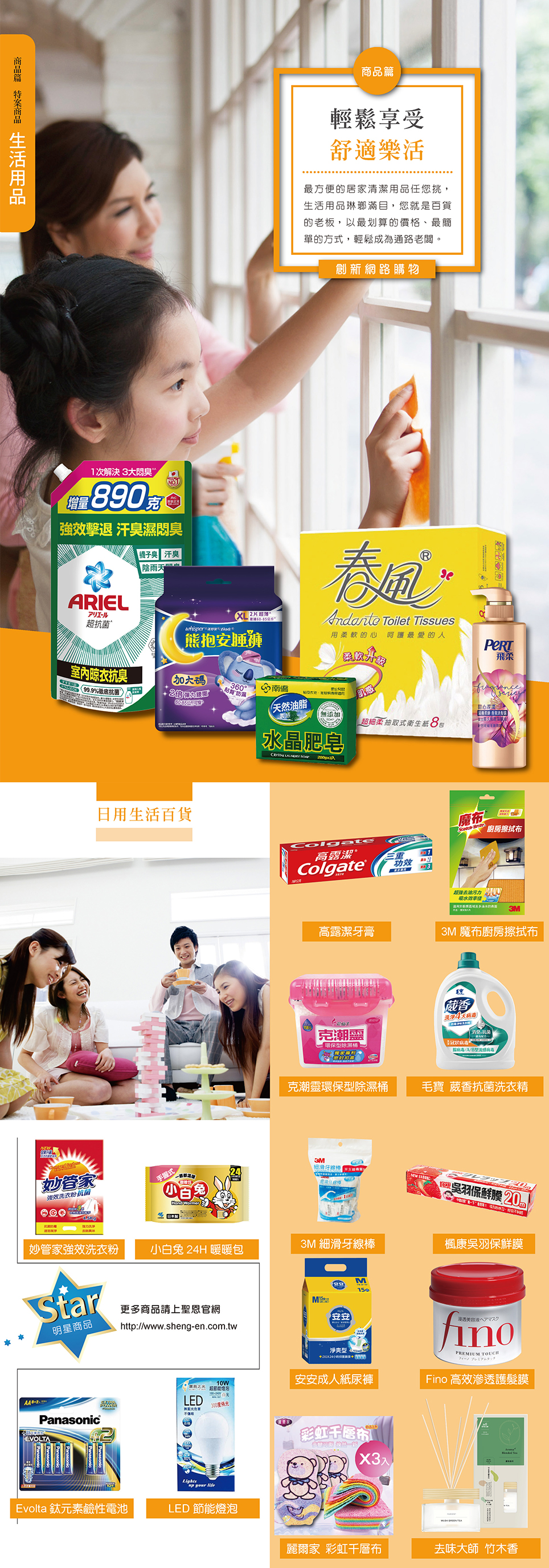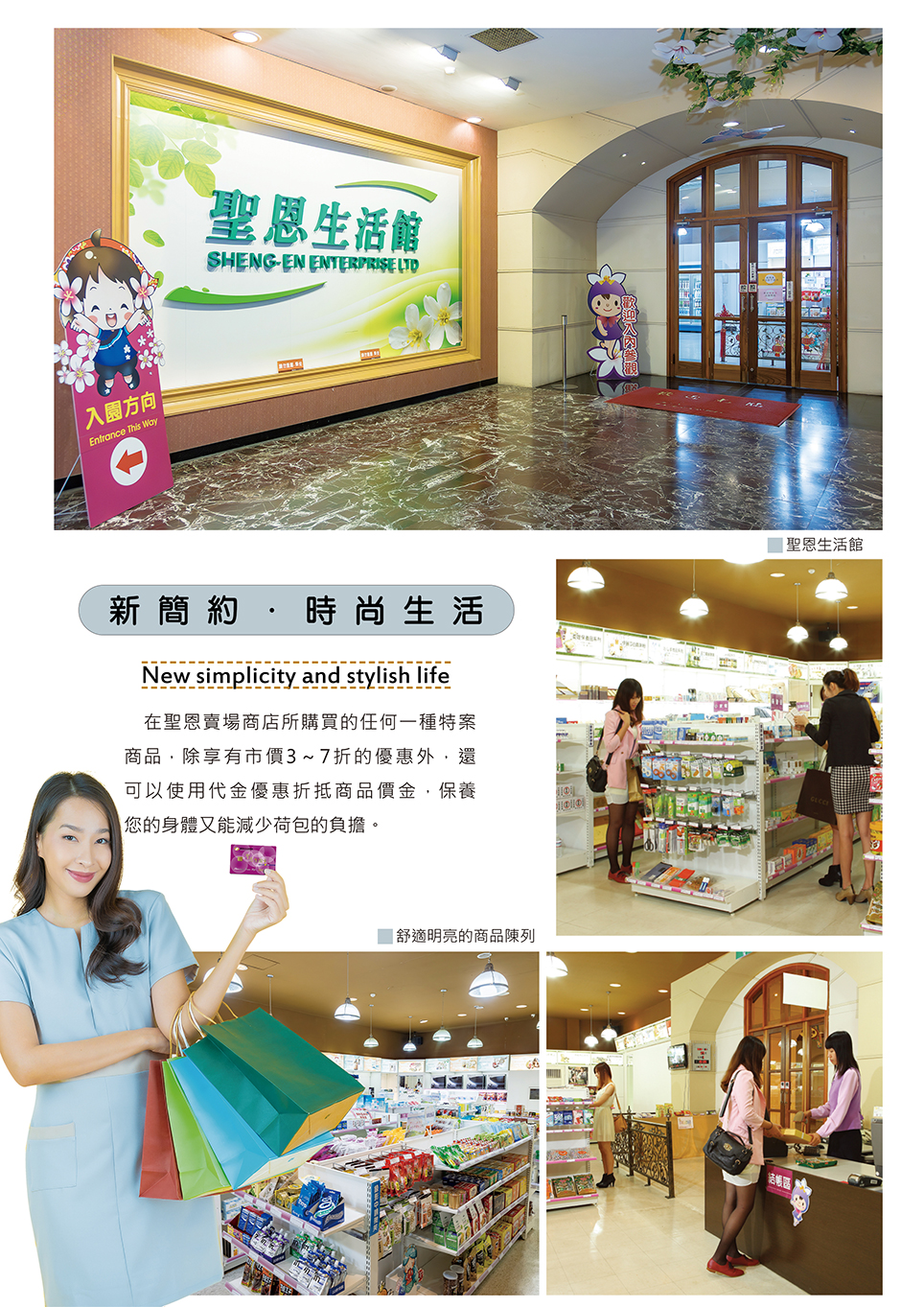 為使「生活護照」服務更完整,聖恩為會員精心規劃了專屬的購物平台,並且把所有商品的行銷利潤轉換成代金預先存入生活卡中,會員只要持生活卡在通路消費,用一次就會省一次。現在只要透過電腦或手機 APP,隨時隨地都可以直接購物、結帳,所有商品也可以宅配到家,交易簡單、方便、又安全。