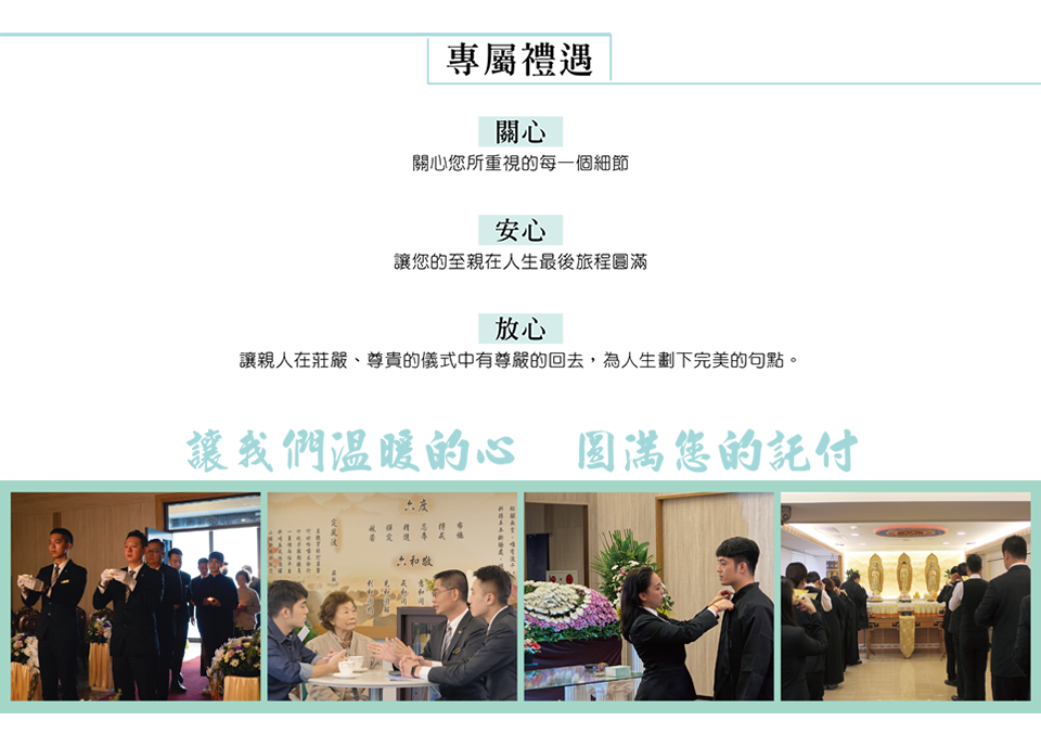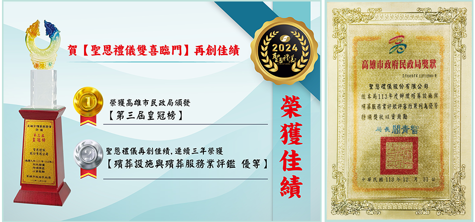 「聖恩」秉持「聞聲知情、善因於心」之理念,致力於提昇質感、營造感動之服務儀軌改革與創新,以極致尊榮的專屬禮遇,圓滿每份珍貴託付。