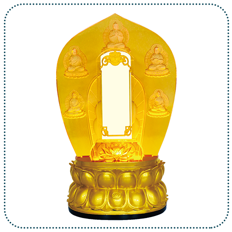 讓至親安座在象徵尊貴與重生的九品蓮花琉璃牌位,由五方如來的佛光護佑,勸化放下一切瞋恨與執著,在慈願的微妙法音引領,散布慈悲回到純淨之心靈,誠願我們的至親都能離苦得樂往生西方極樂淨土中。